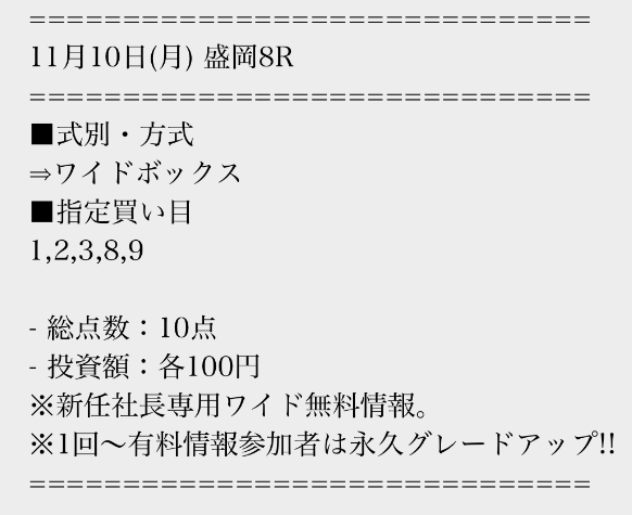 - 2025/11/10盛岡8R [📷]◯32,400円