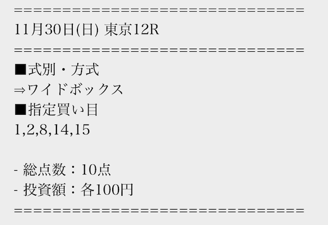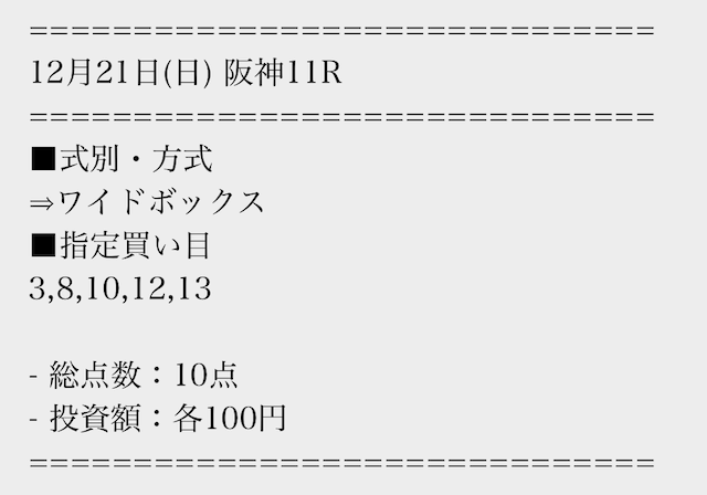 ワイド予想にはどうしても配当面の不安がありますし、軍資金には余裕があるので・・・