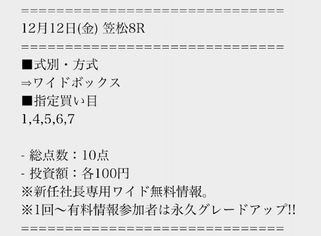 馬券代が明記されていて、それ以外の費用がかからない点は非常に安心できます。