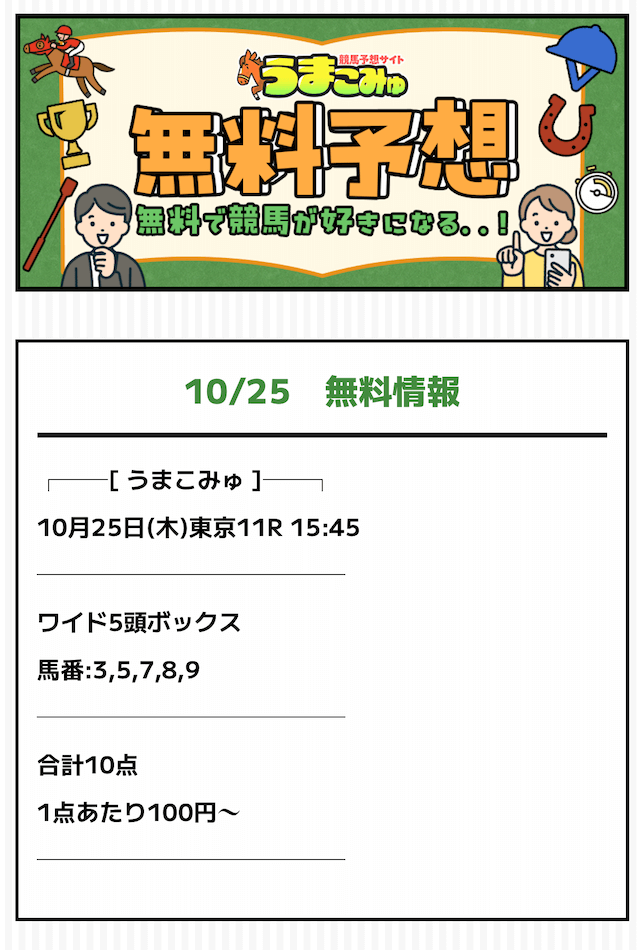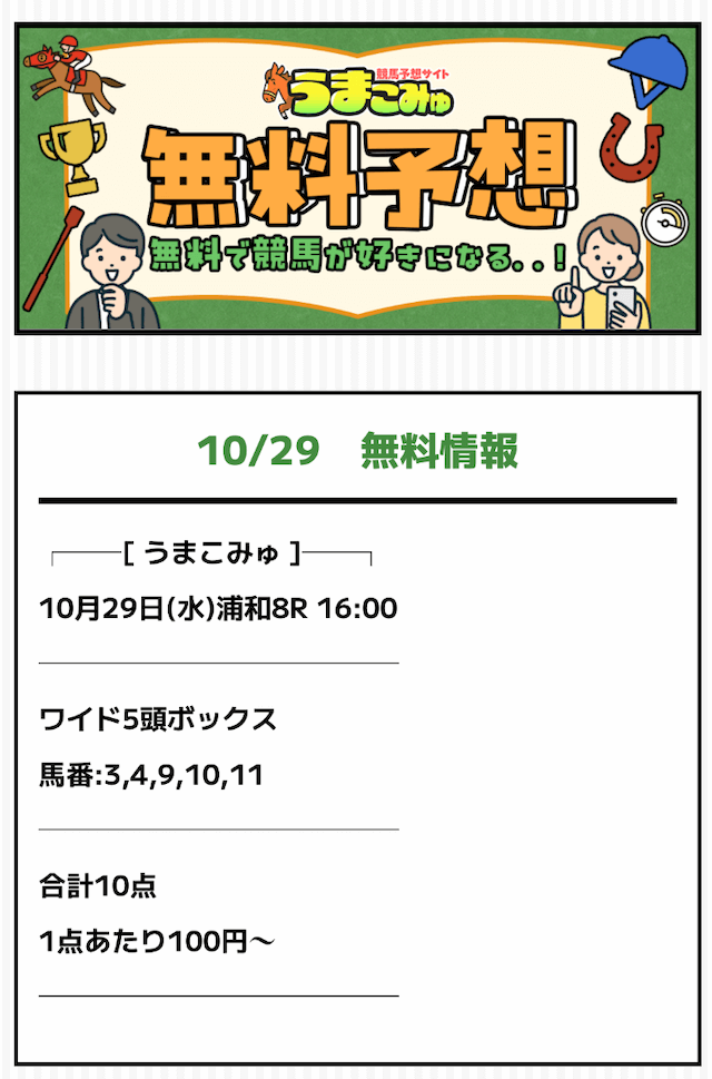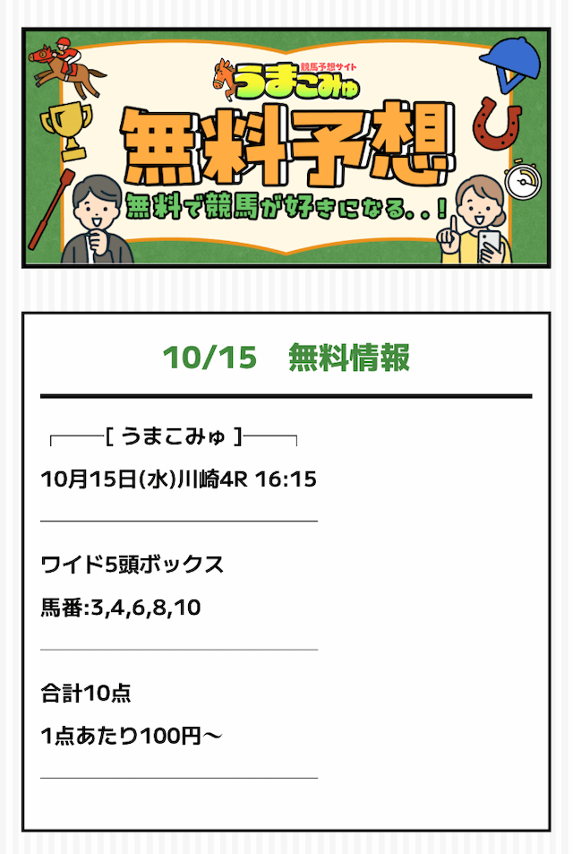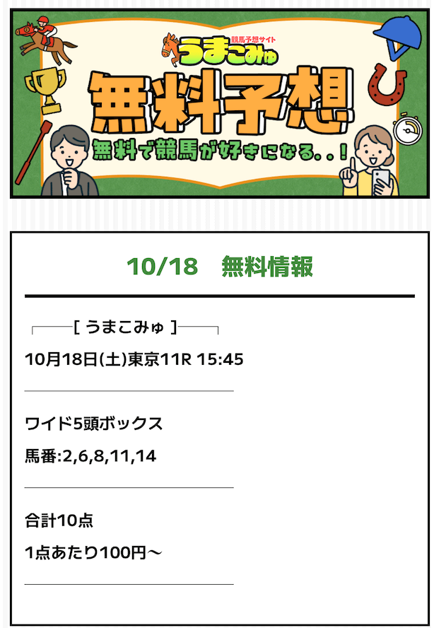 そこで競馬戦線では、うまこみゅの実力を測るためにも無料予想に参加し徹底検証をします!