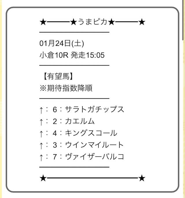 とにかく当たる。当たる予想がみたい人はうまピカ使えば問題ないと思う。