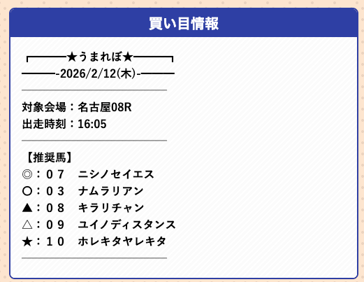 - 2026/2/12名古屋8R [📷]◯214,300円