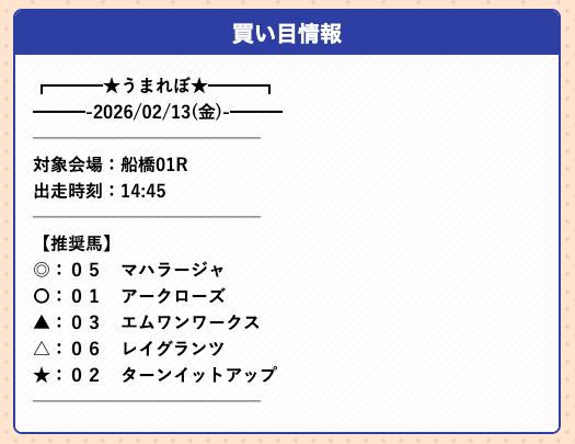 - 2026/2/13船橋1R [📷]◯29,400円