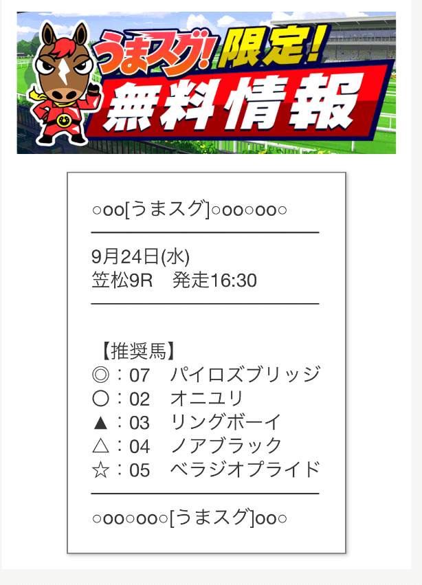 うまスグの無料予想に初参加【2024年9月26日】