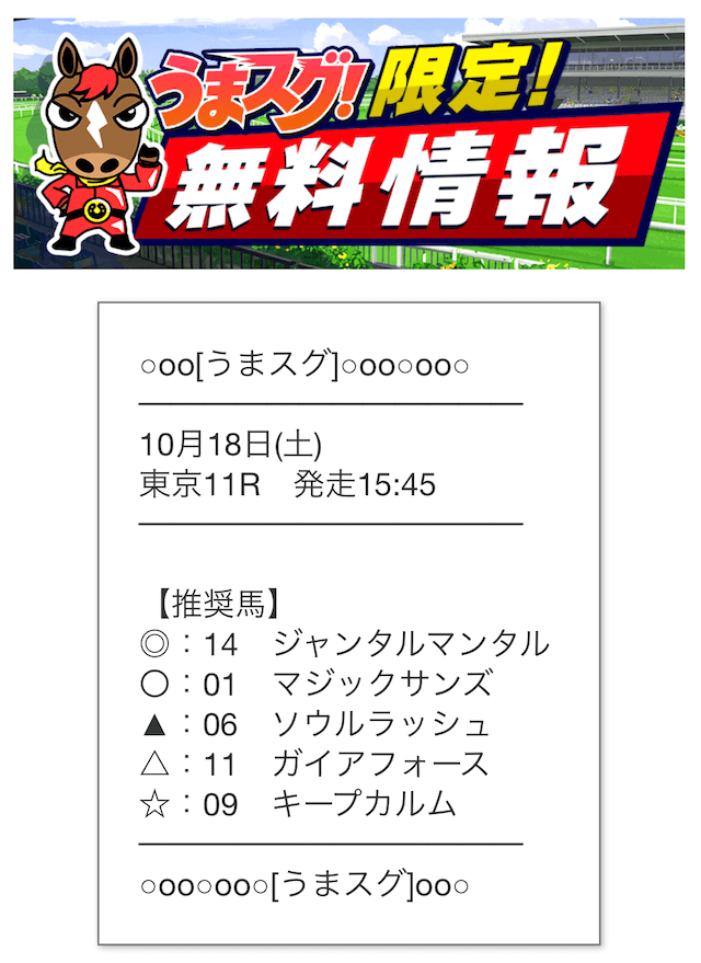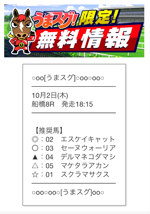 うまスグの公開する予想は予想印のみで、券種や軍資金に関しては自分で決める必要があります。