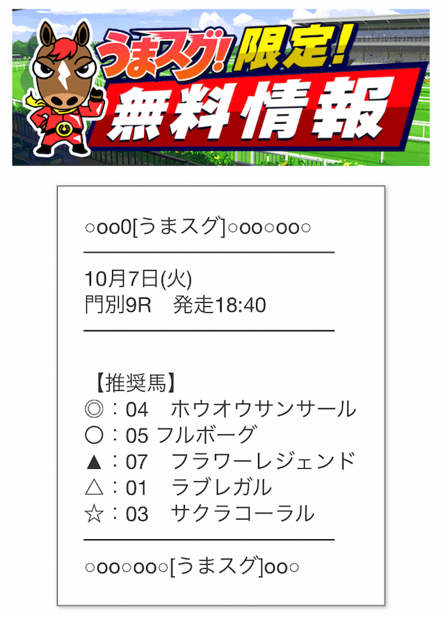 無料情報が推奨馬を掲載してくれるんですけど、これが結構役立つんですよね、その日の気分で馬券買ったりするんですけど