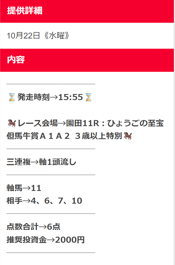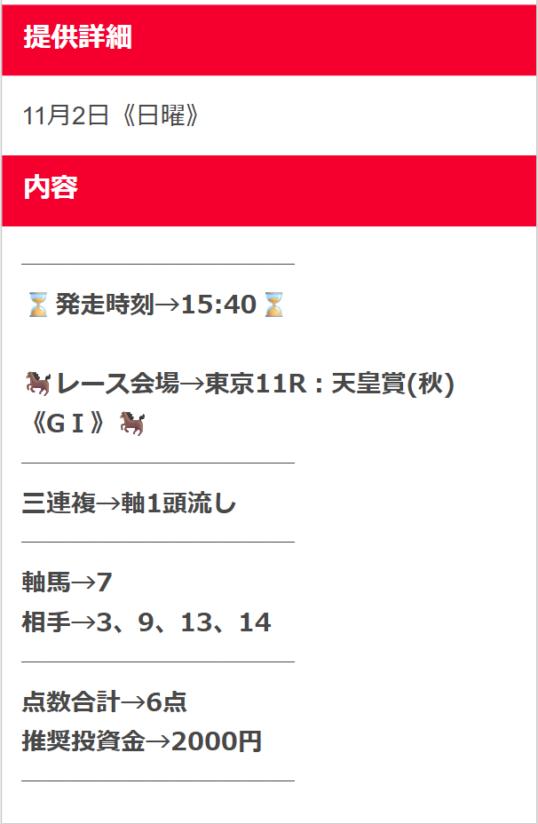 この買い目を見る限りでは無料予想と何ら変わりはありません。