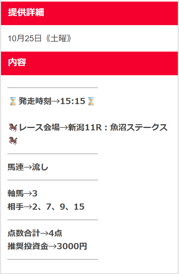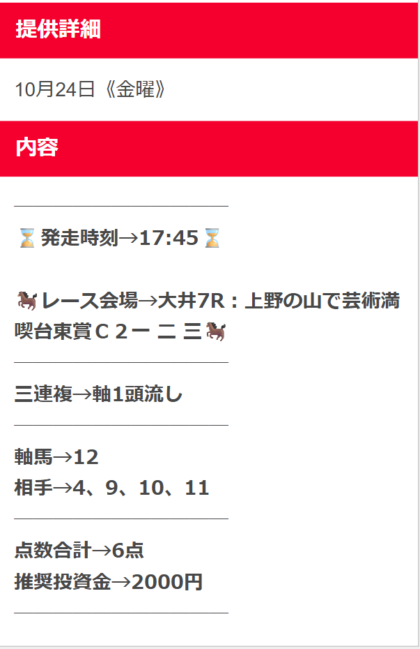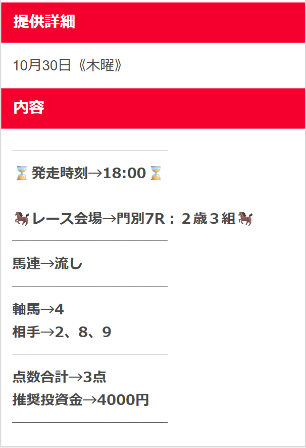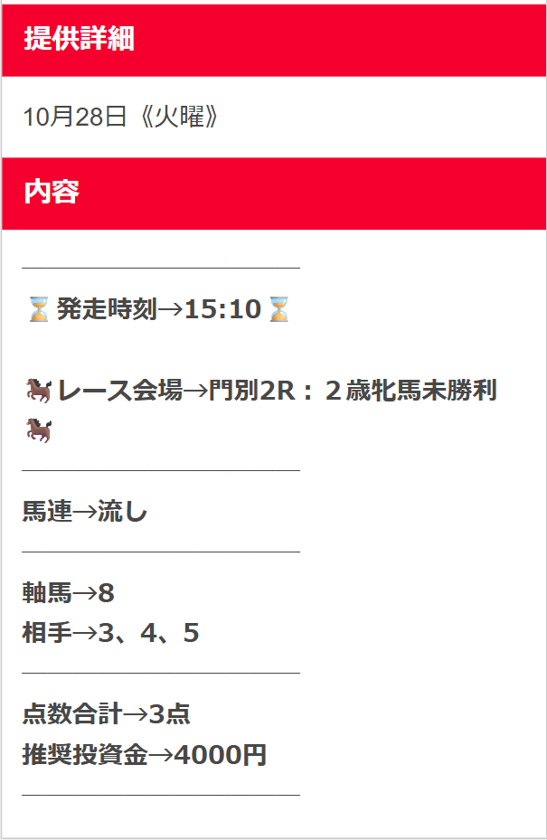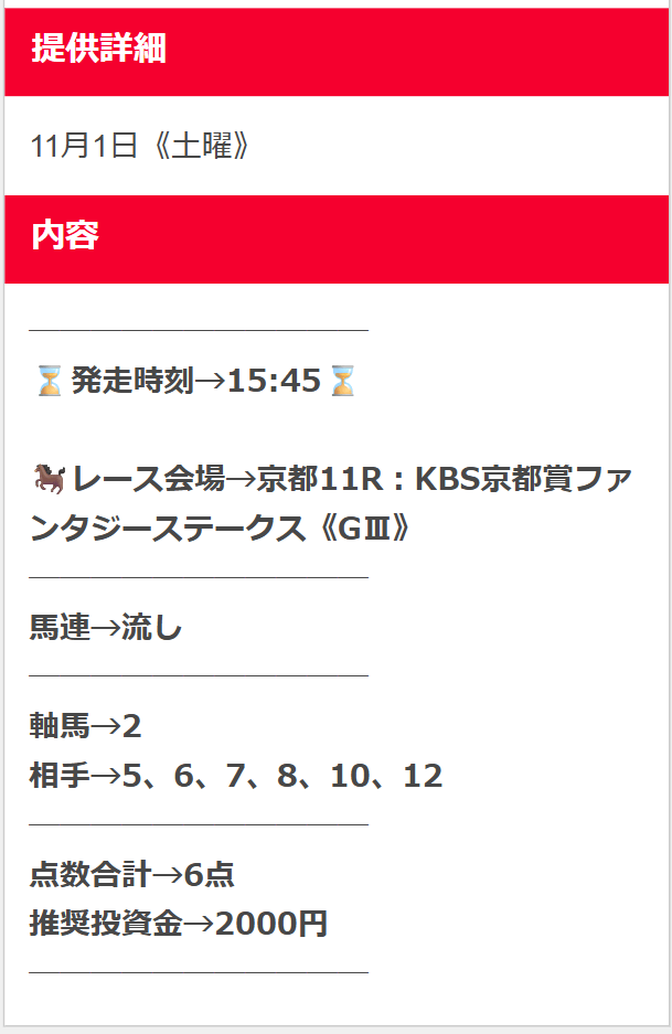 有料予想初戦で参加するレースは、2025年10月31日の名古屋6R。