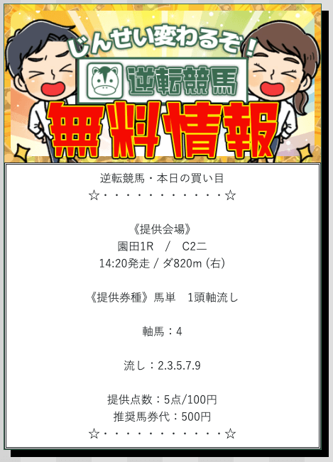 逆転競馬の無料予想詳細