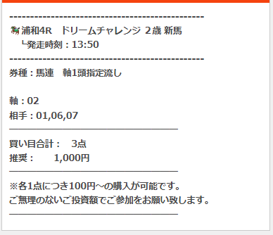 無料予想で4連勝しましたので、思い切ってすぐに有料予想「スタートダッシュプラン」を購入しました!