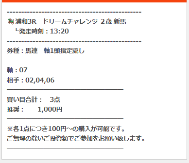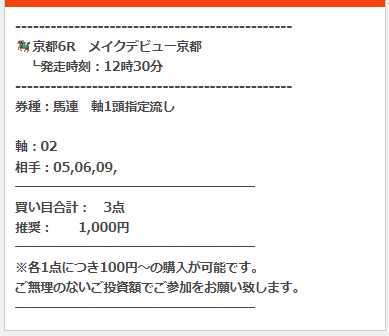 軍資金は1点500円から1,000円となっていますが、競馬戦線の軍資金は余裕があるので、1点1,000円に統一。