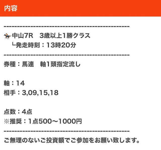 予想を受取るには前日に事前エントリーが必要なので忘れないように注意が必要。