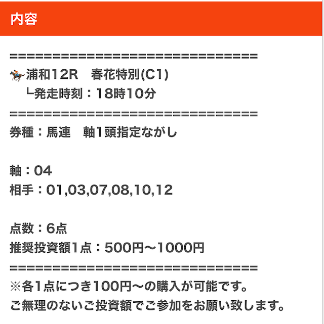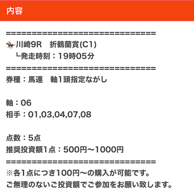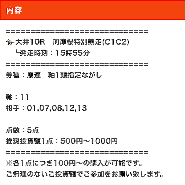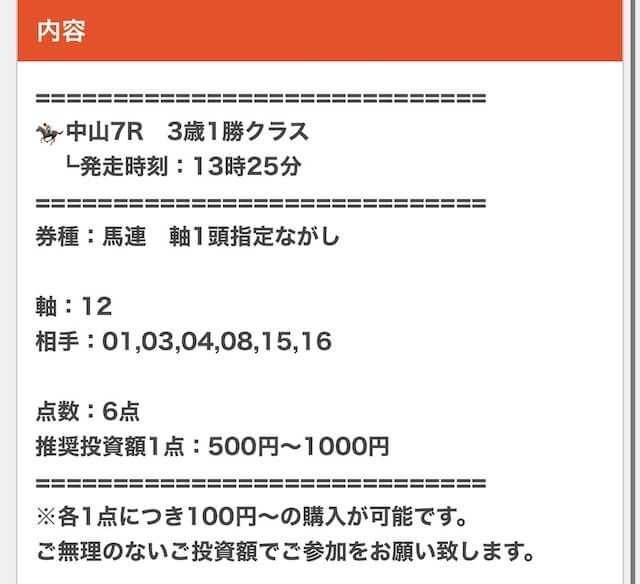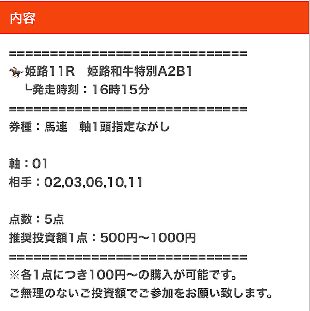 実際に公開された買い目はこちらです。