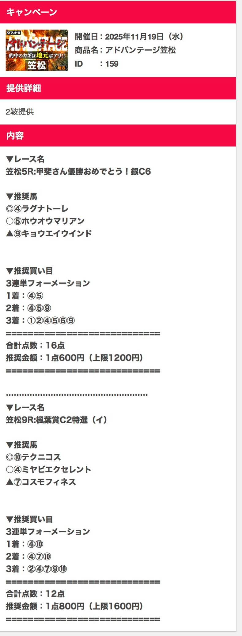 プロの情報に流行りのAIを掛け合わせることで予想精度に磨きがかかっている印象。