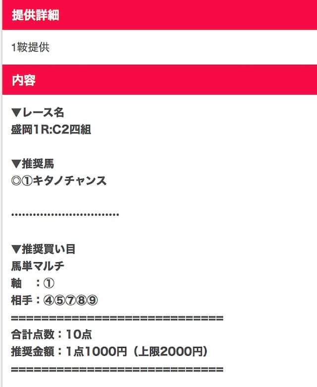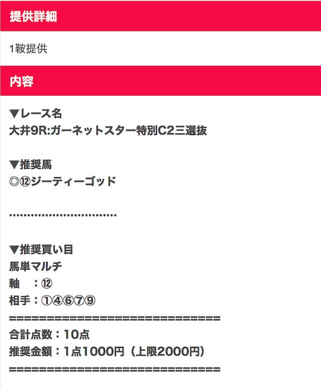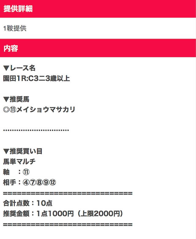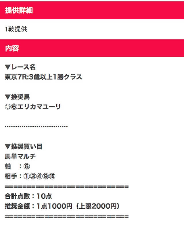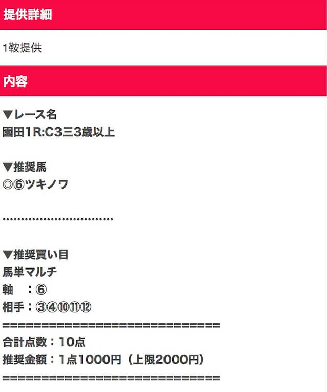 公開されている買い目を見て、納得がいけば予想に参加しましょう。