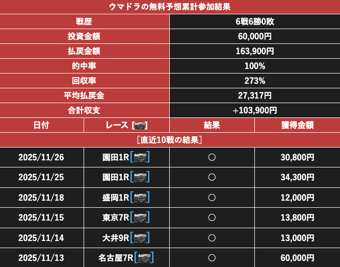 ですが、ウマドラの無料予想は稼げるというのは検証で分かっているので、まずは最低投資額の1点100円で参加するのがオススメ。