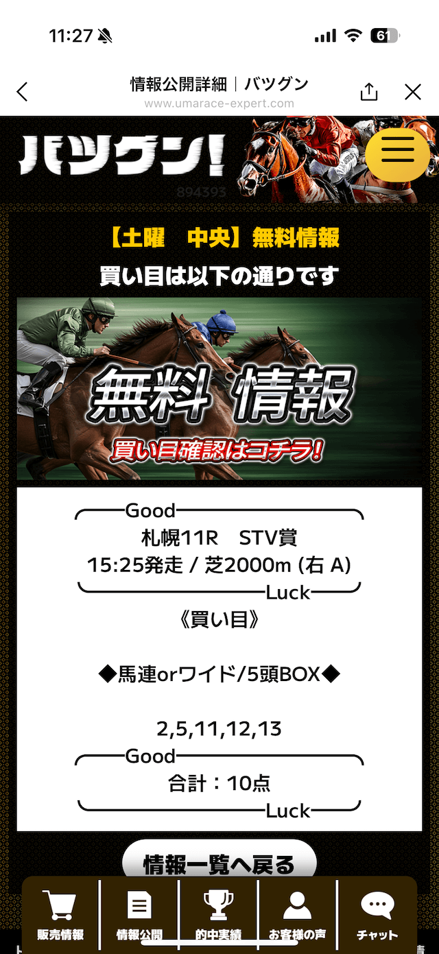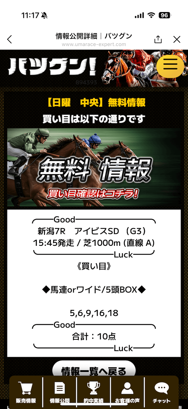 バツグンの無料予想詳細