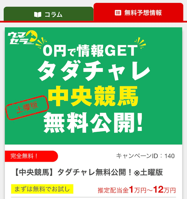 それでは早速、ウマセラの公開する無料予想に参加していきたいと思います!