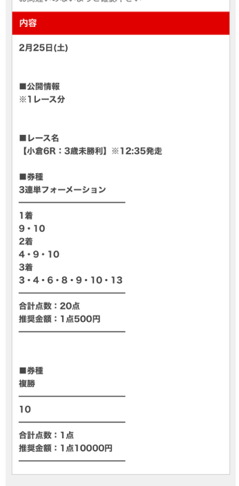 無料情報に数レース参加してちゃんと稼がせてもらえたので、有料プランへの参加を検討してます。