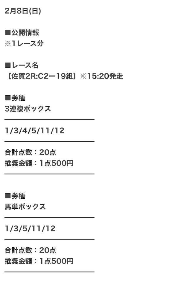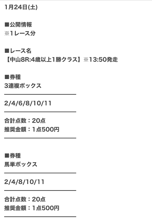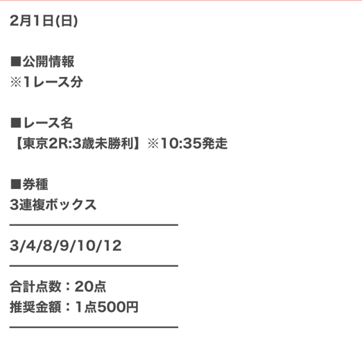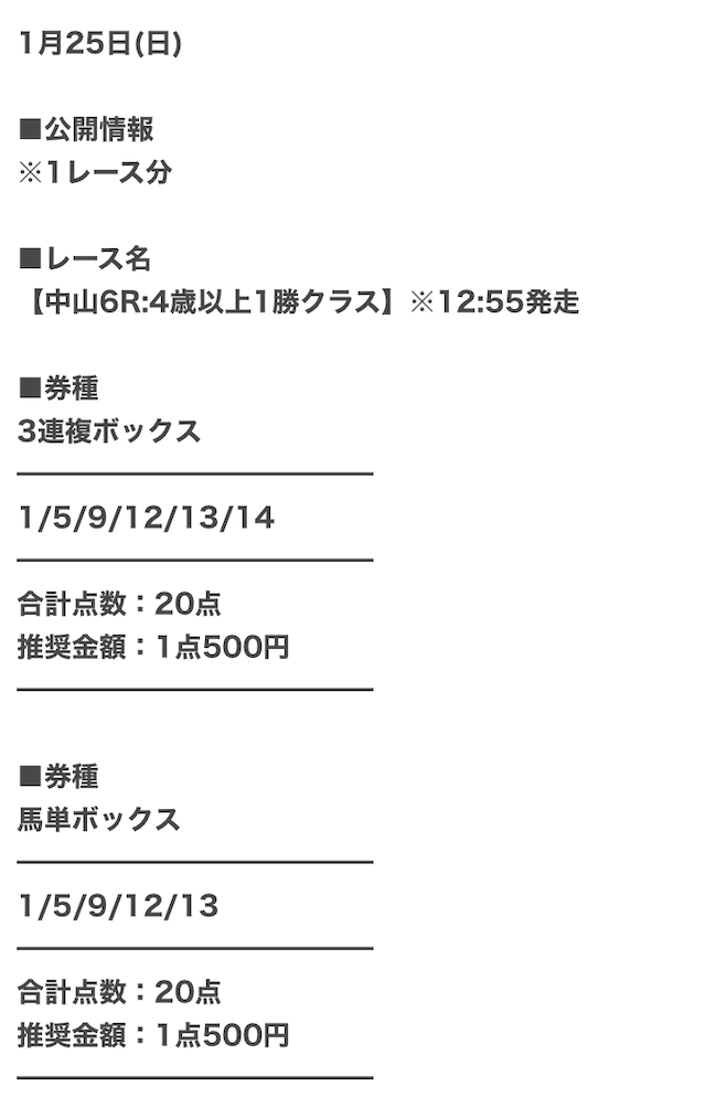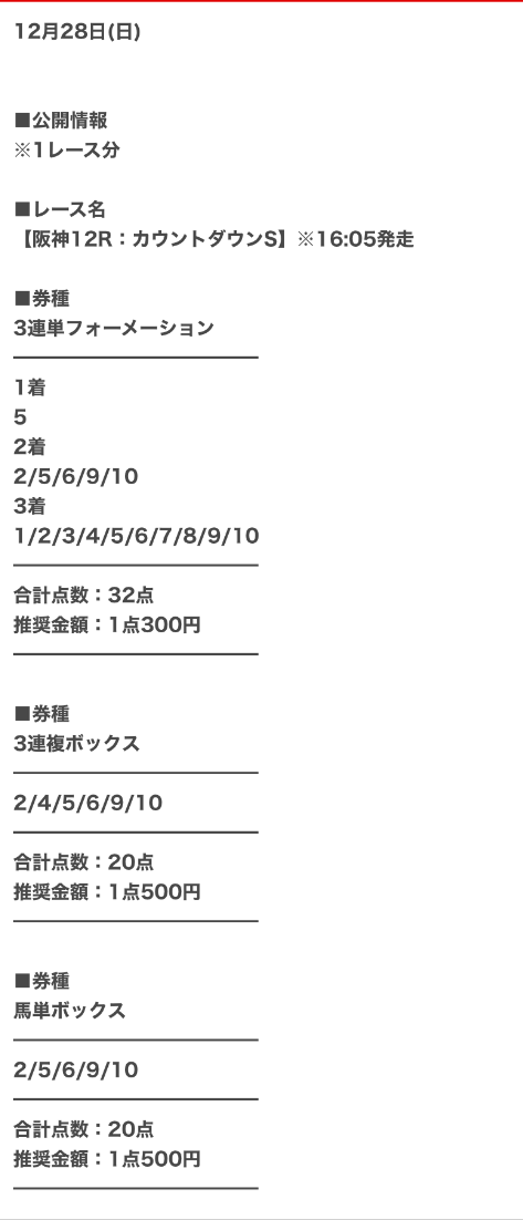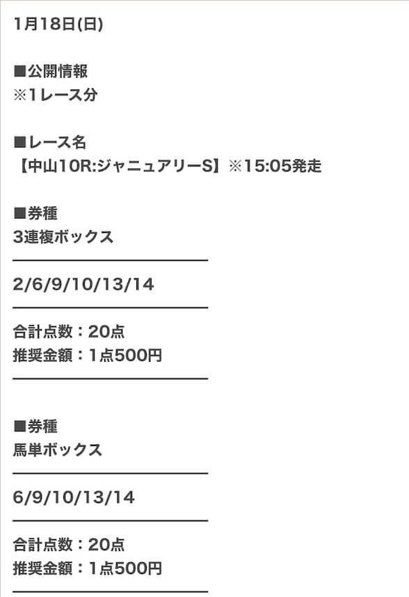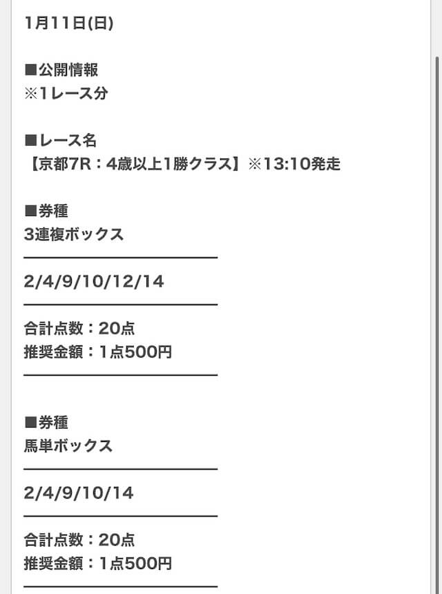 実際に公開された買い目はこちら。