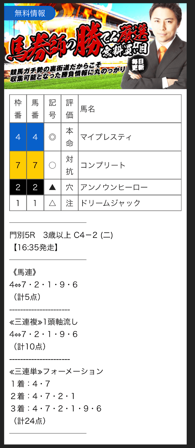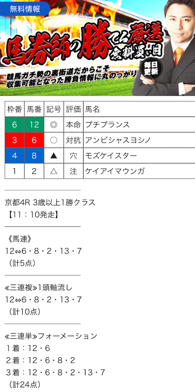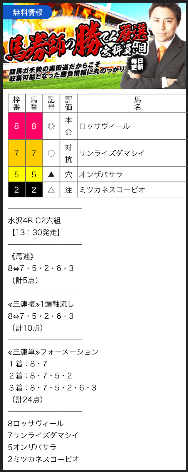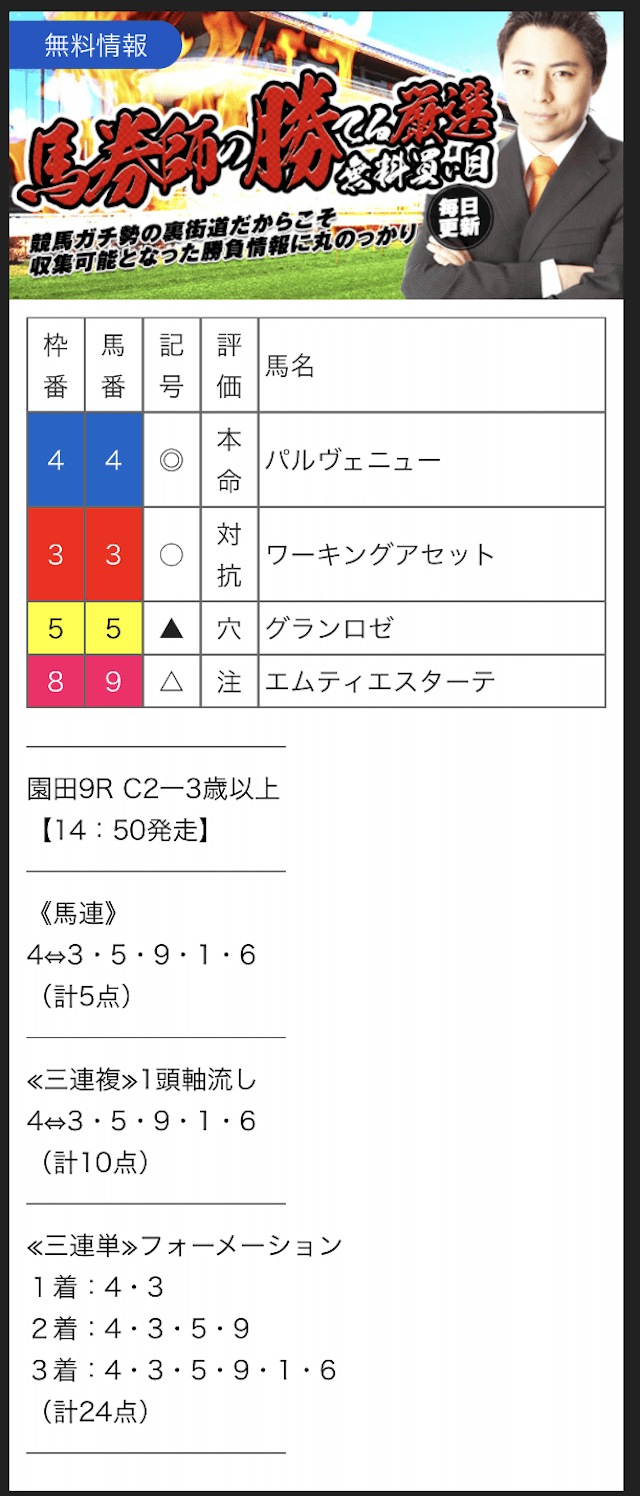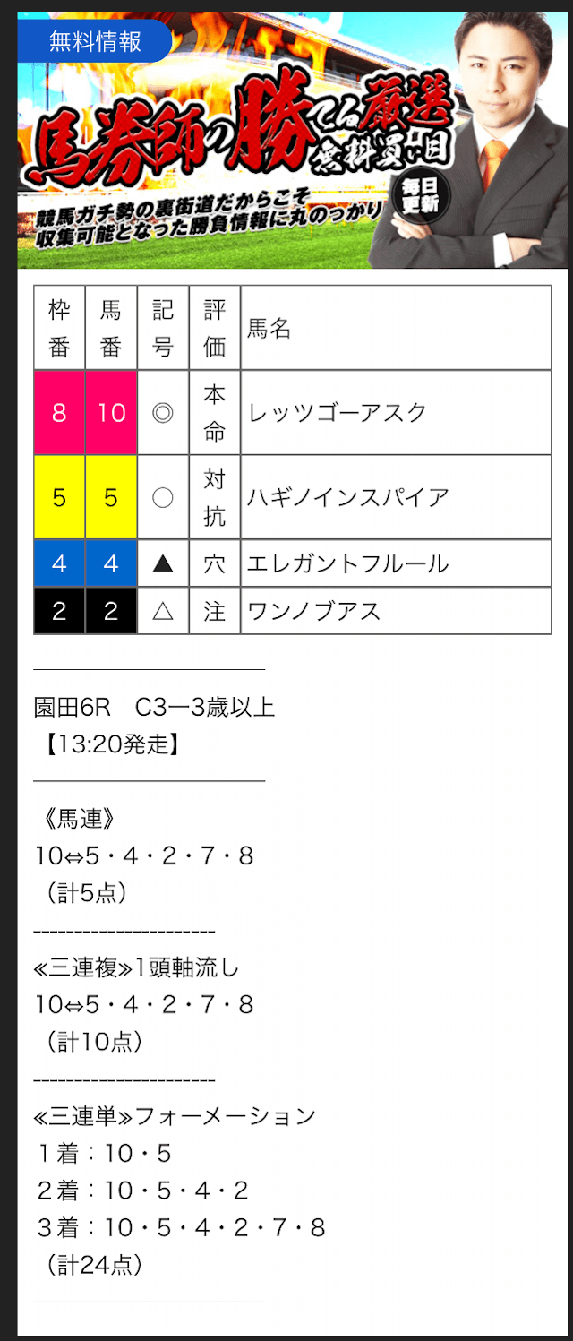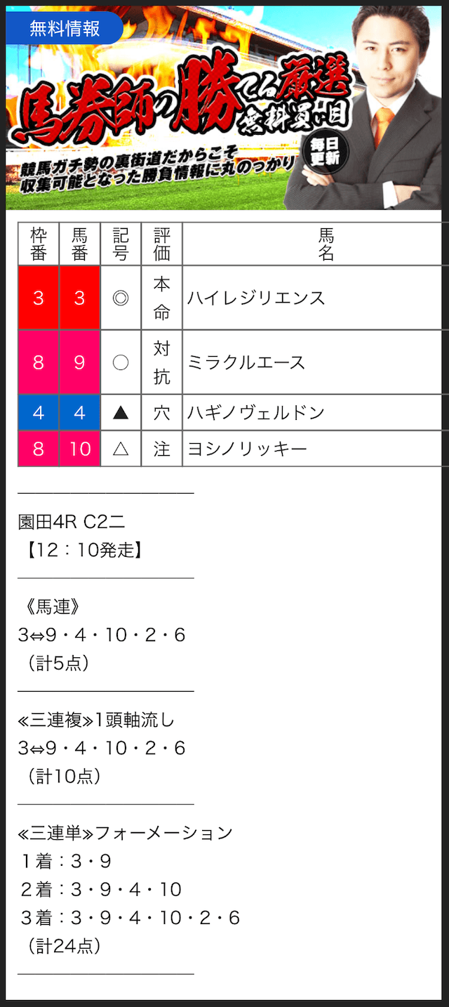 また、専属馬券師を取り揃えているようですが、その実力や実績は不明。