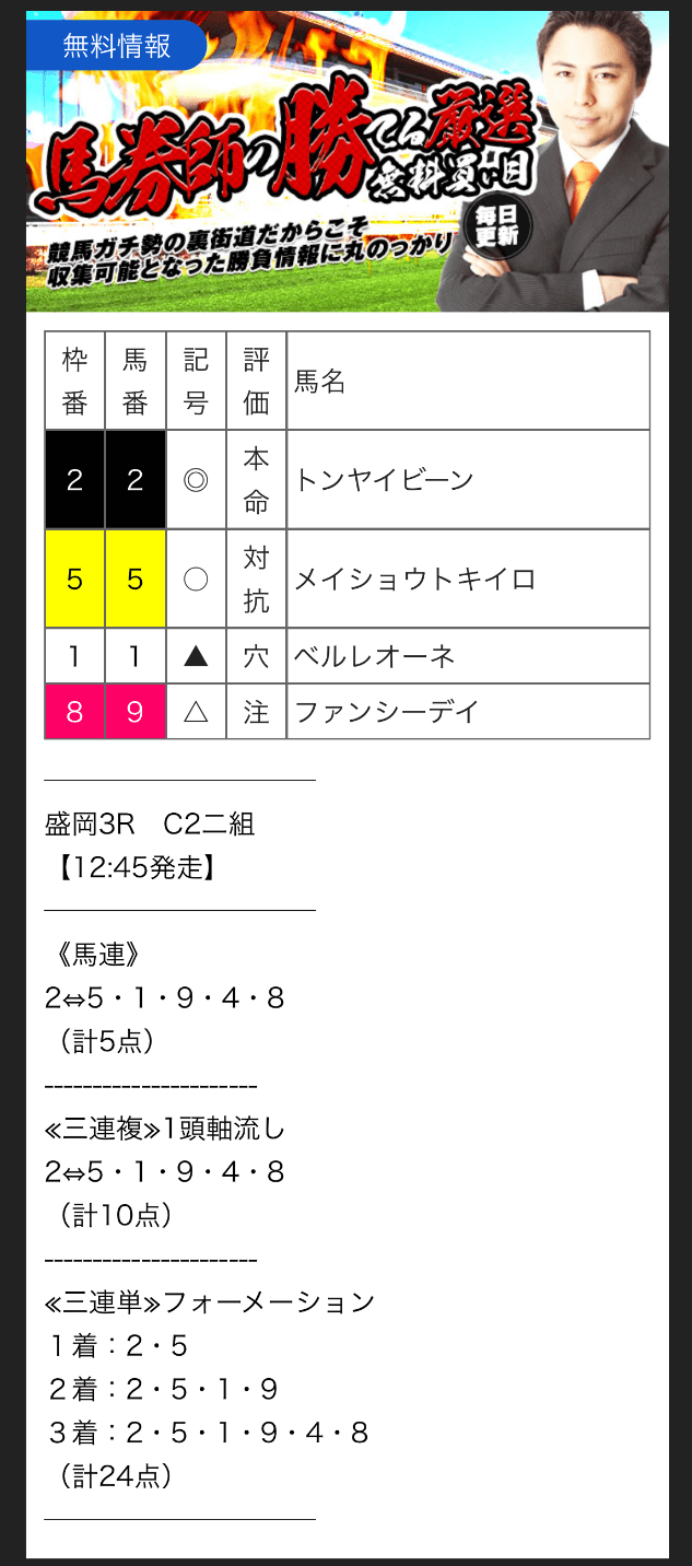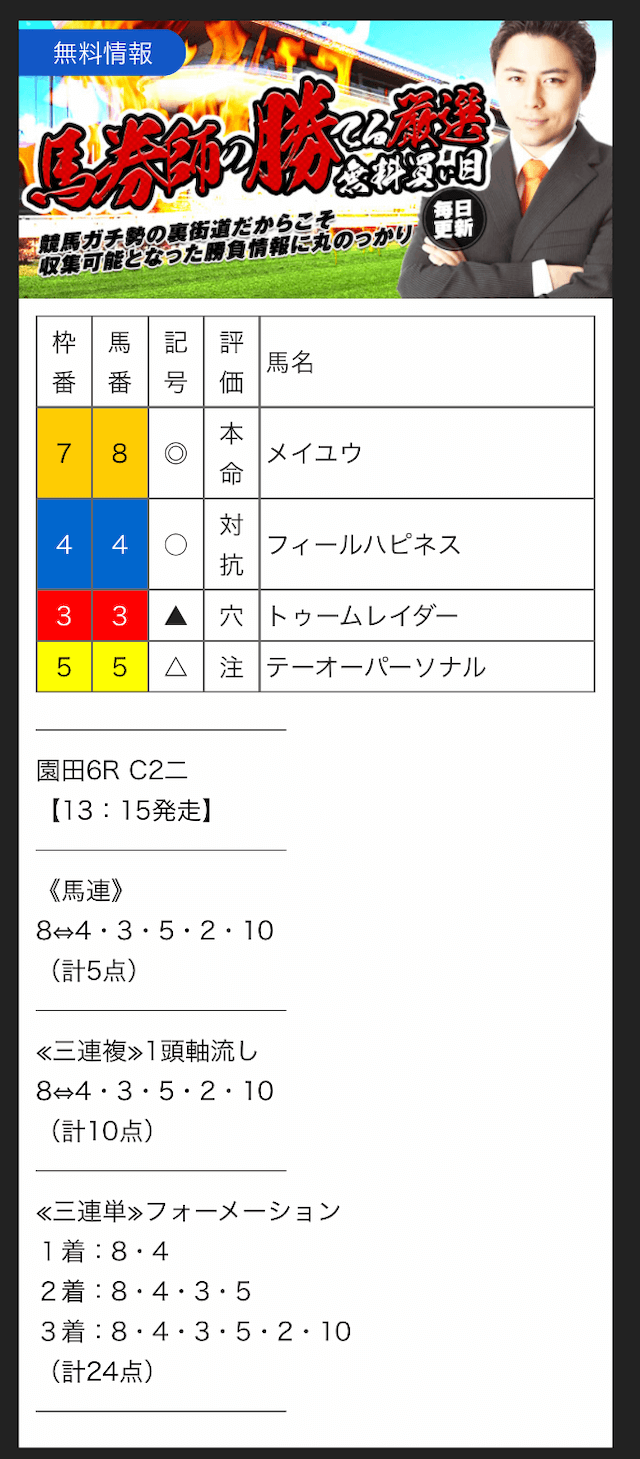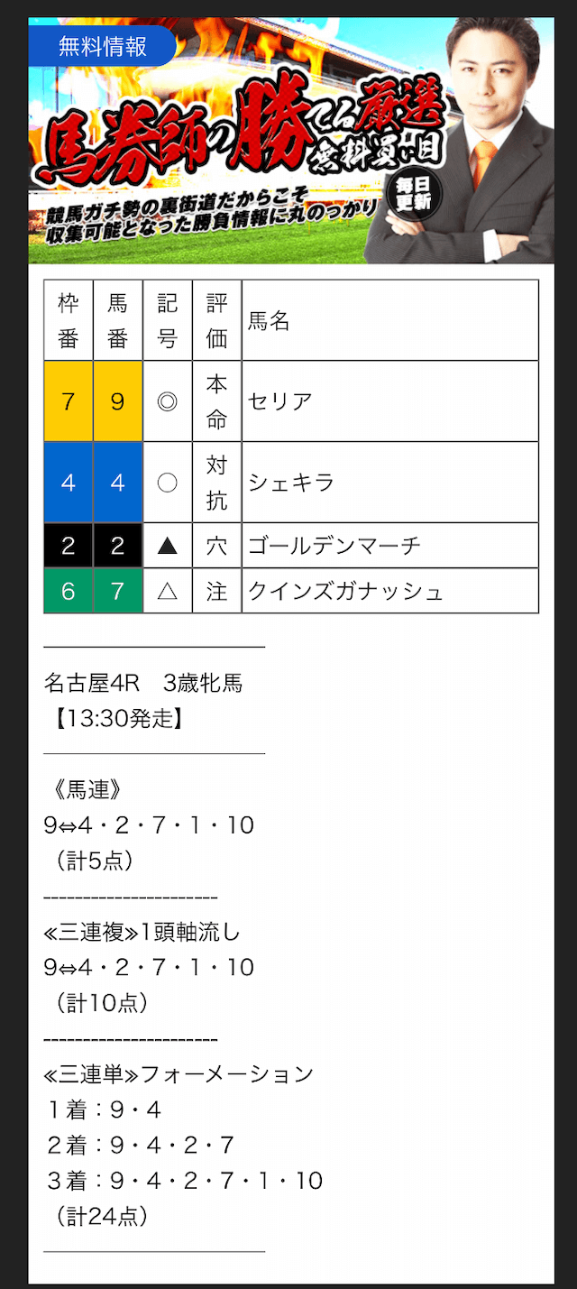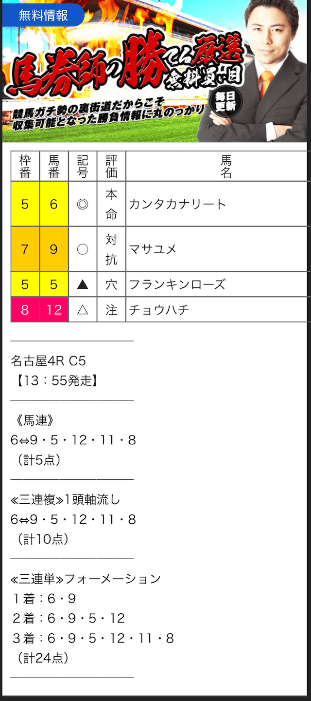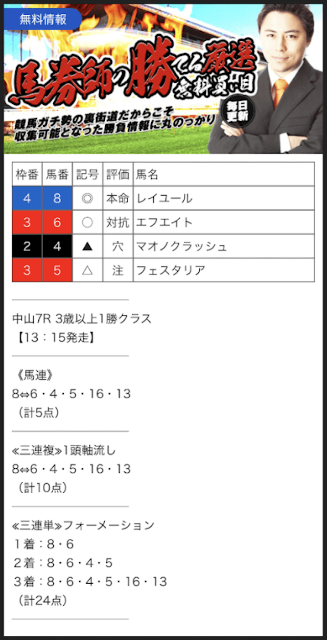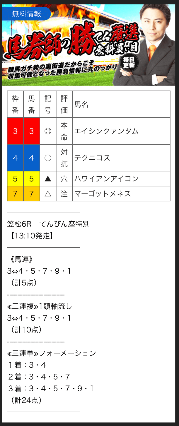 また、専属馬券師を取り揃えているようですが、その実力や実績は不明。