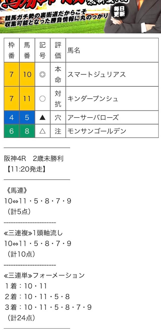 推奨馬券代の記載はなかったので、自分の懐事情を考えて馬券代を決めるのがオススメです!