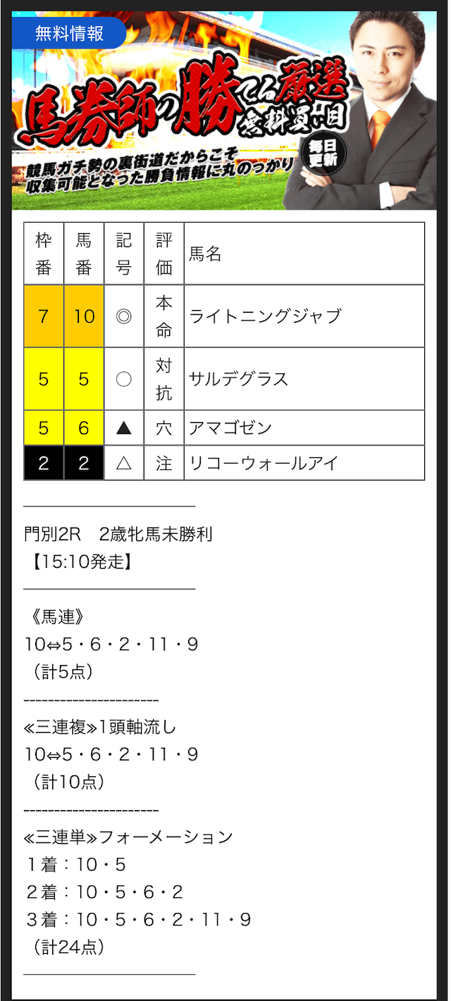 それでは早速、競馬裏街道の公開する無料予想に参加していきたいと思います!