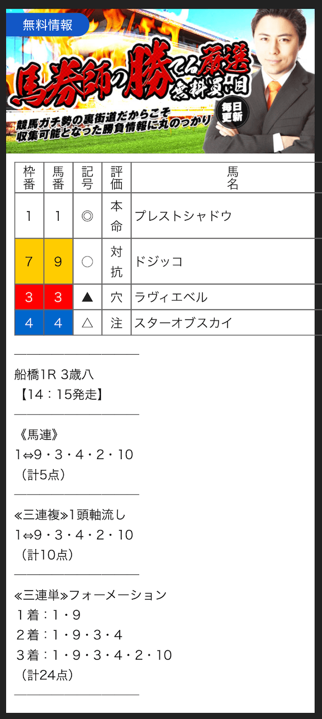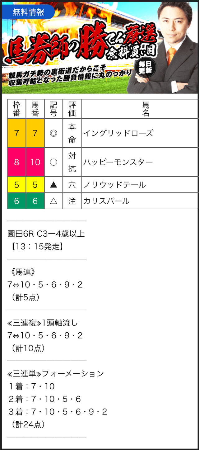 無料予想でこの精度なのでむしろ使わない手はないでしょう!