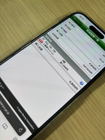 投資金馬券代 4800円情報料 15000円獲得金額 +528,120円