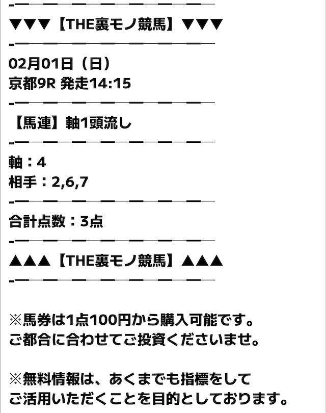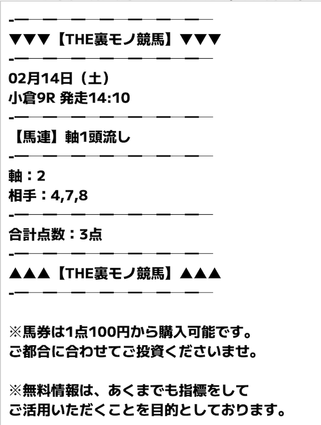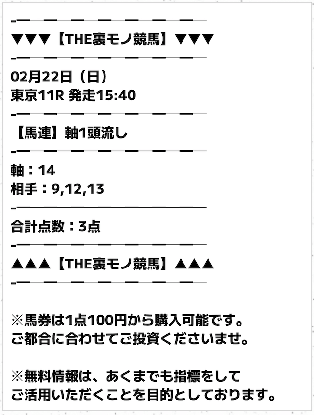 3点の無料予想でコンスタントに当てている裏モノ競馬。