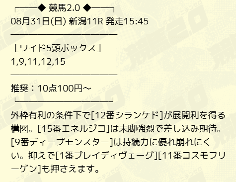 無料予想に初参加【2025年8月31日】