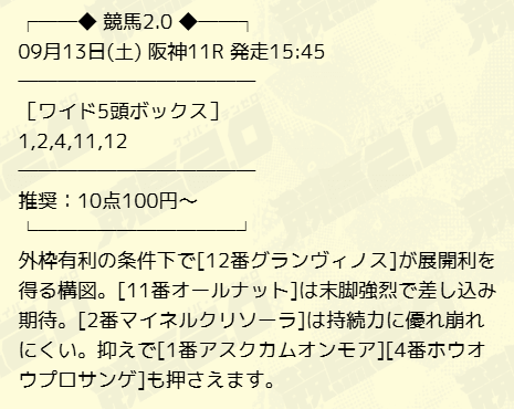 有料予想初戦。