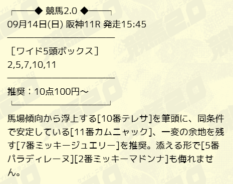 競馬2.0とは、様々なファクターや展開をAIでシュミレーションし予想を公開する予想サイト。