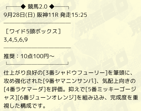 実際に公開された買い目はこちら。