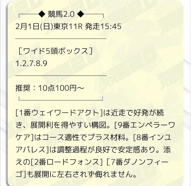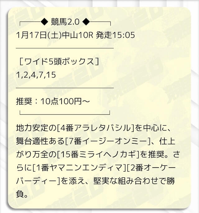 無料予想もワイドで当たりやすく、週末の参考にしてます。