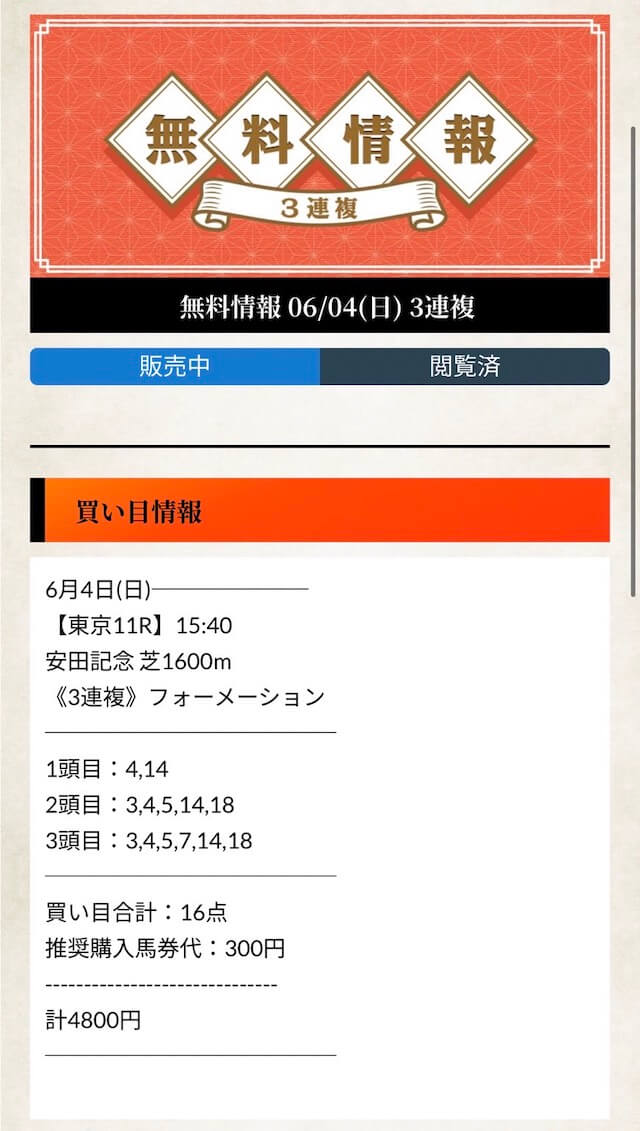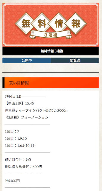 馬単とか三連単予想も無料公開してくれると助かるね。
