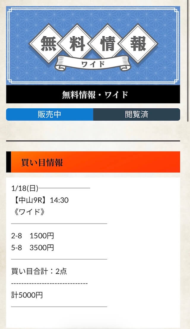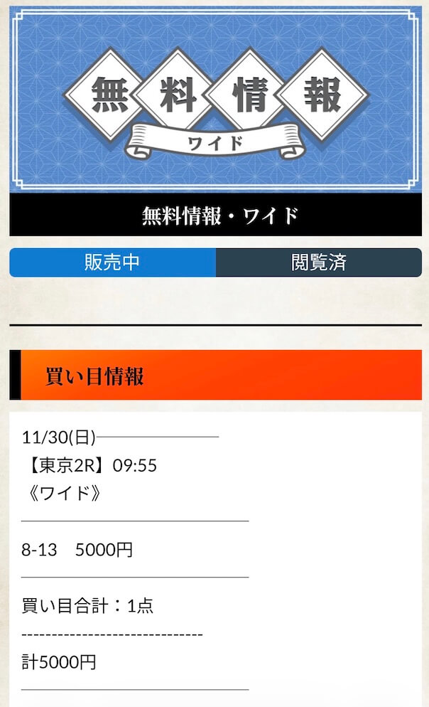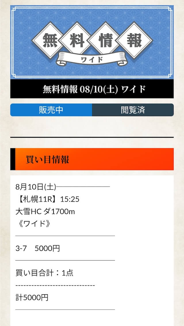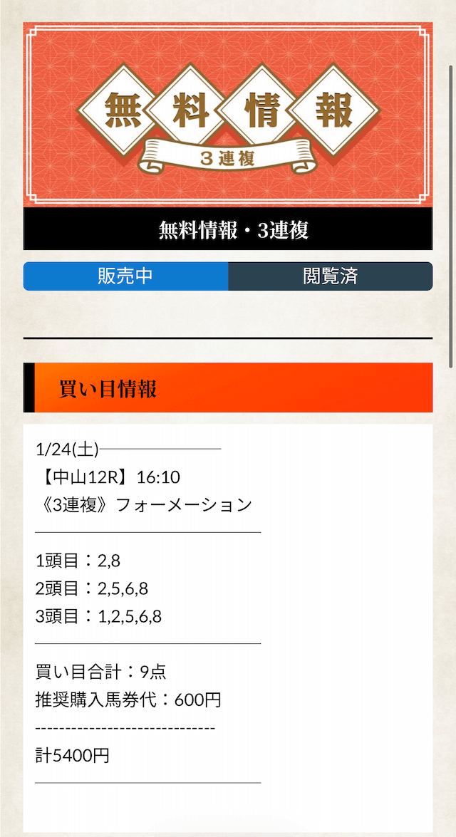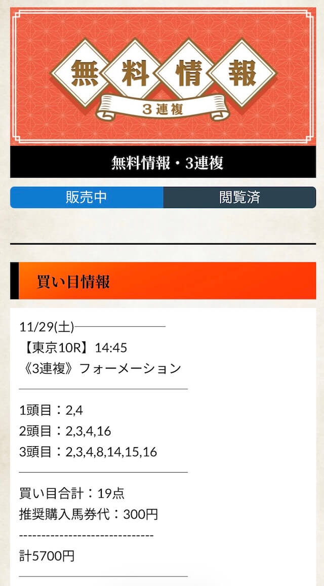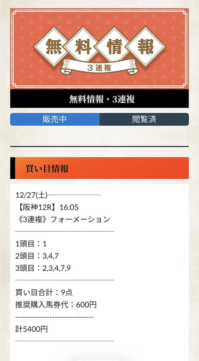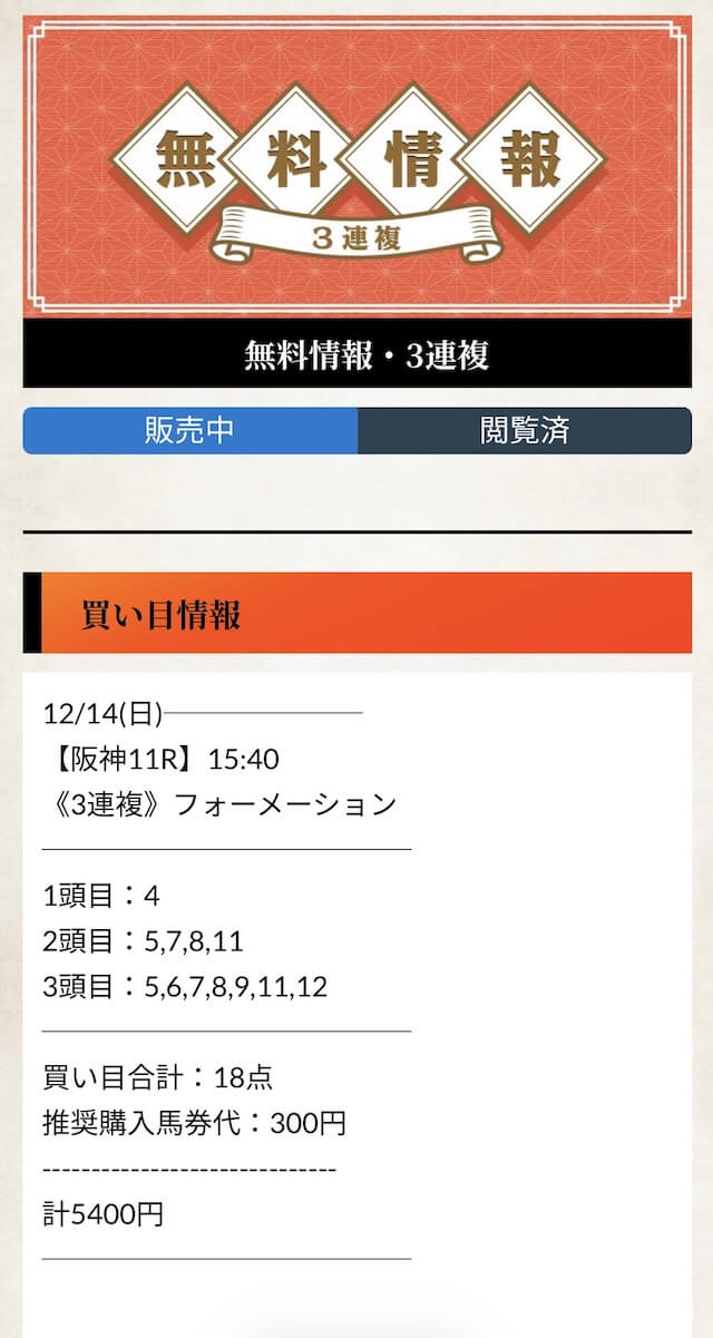 無料予想とはやはり次元が違う実力を見せてくれた有料予想。
