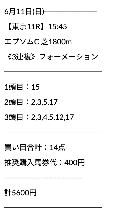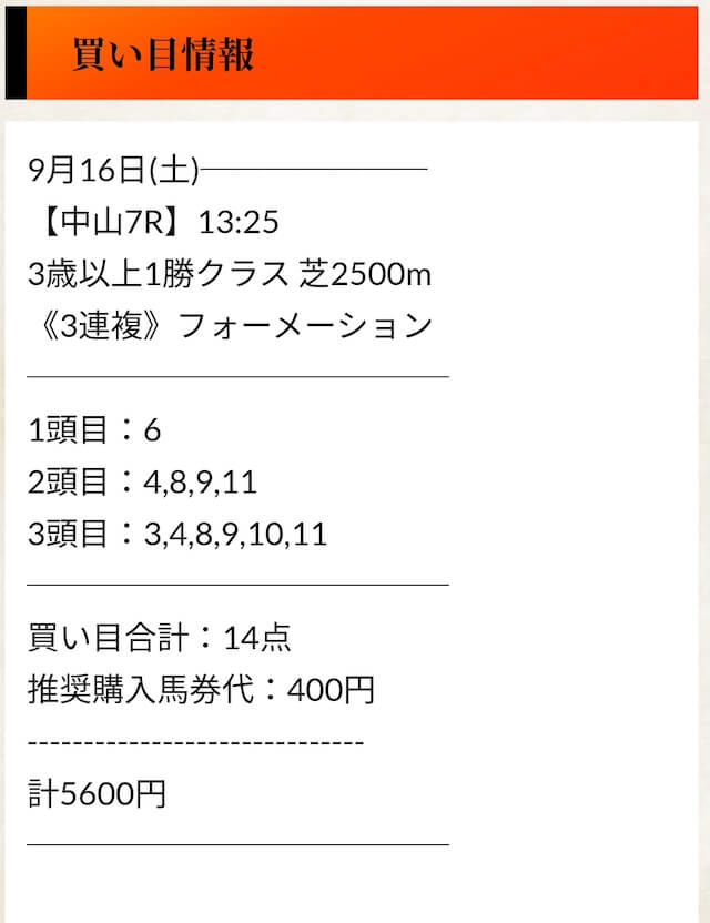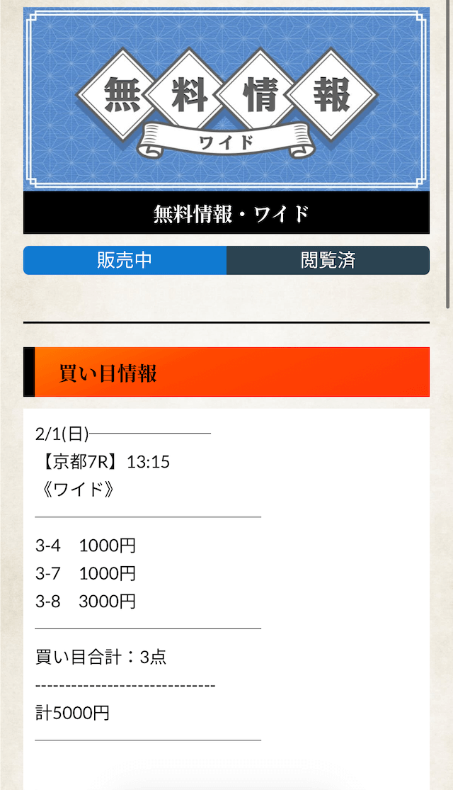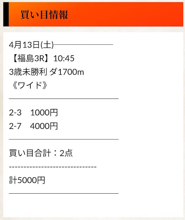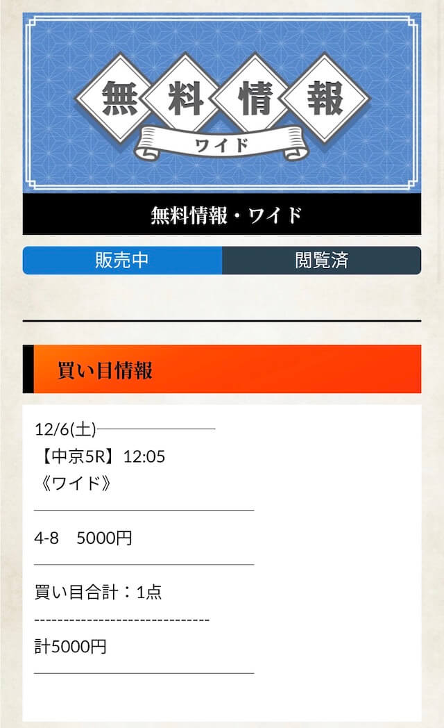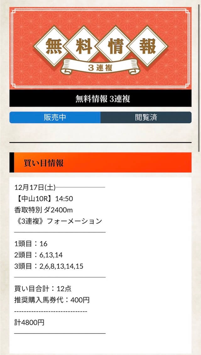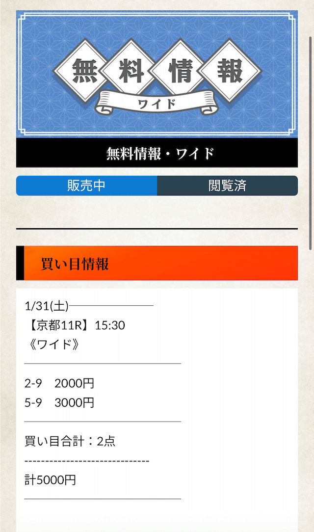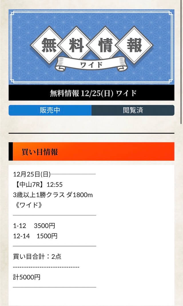 無料予想とはやはり次元が違う実力を見せてくれた有料予想。