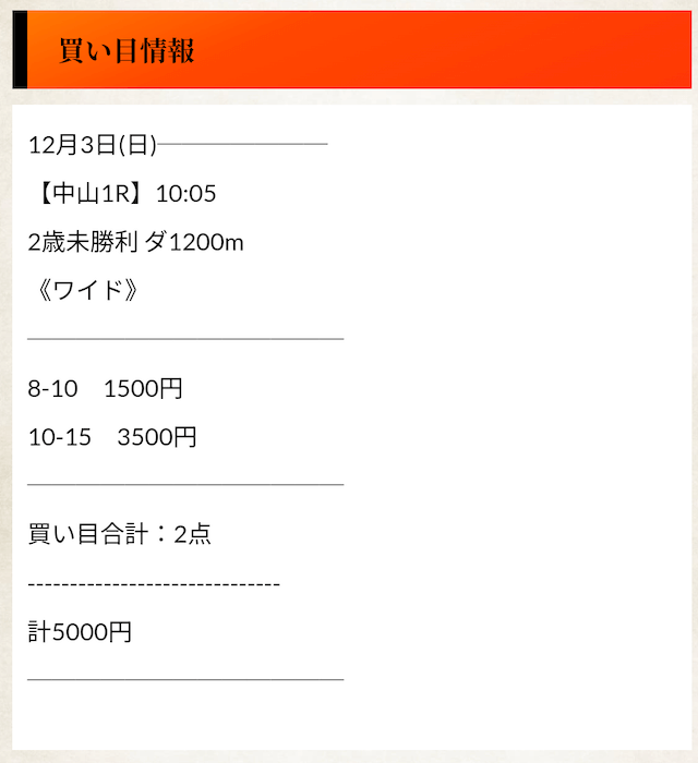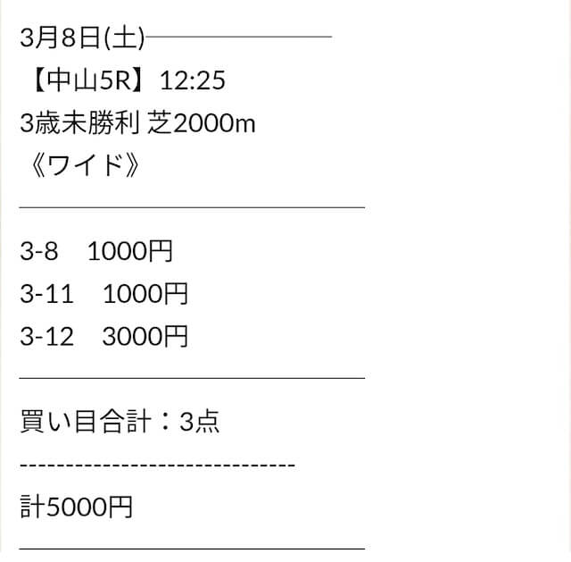 投資金額は5,000円以内で、購入点数はレースによって異なるようです。